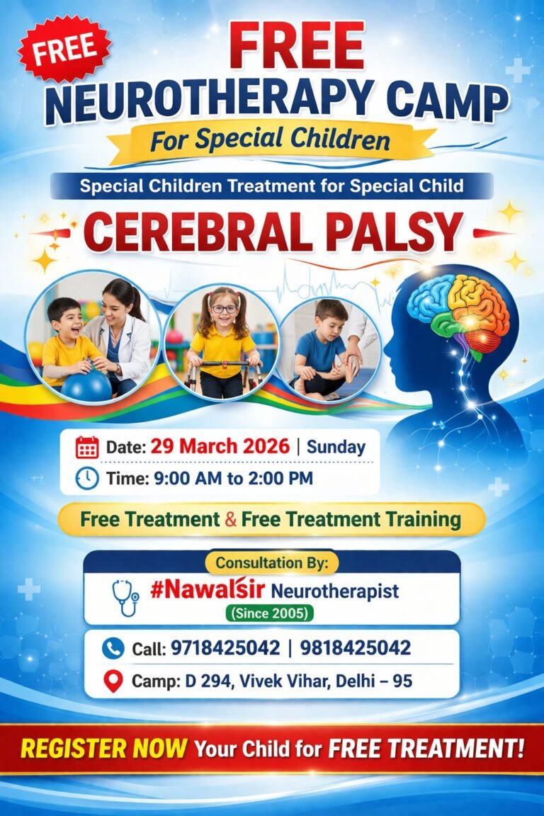 Free Neurotherapy Camp for Special Childrenनिराशा में आशा की एक किरण है “न्यूरोथैरेपी ” #ADHD downsyndrome #downsyndrometreatment निशुल्क न्यूरोथैरेपी उपचार कैम्प, आपके विशेष बच्चों के लिएदिनांक : 29 मार्च 2026 | दिन रविवार प्रातः 9am to 2pmन्यूरोथैरेपी का विशेष इलाज, आपके विशेष बच्चों के लिए सीखें delayspeech #delaydevelopment #delaygrowth #DelayedMilestones #delaymentaldevelopment autism #cerebralpasy #hyperactivity #cpchild…